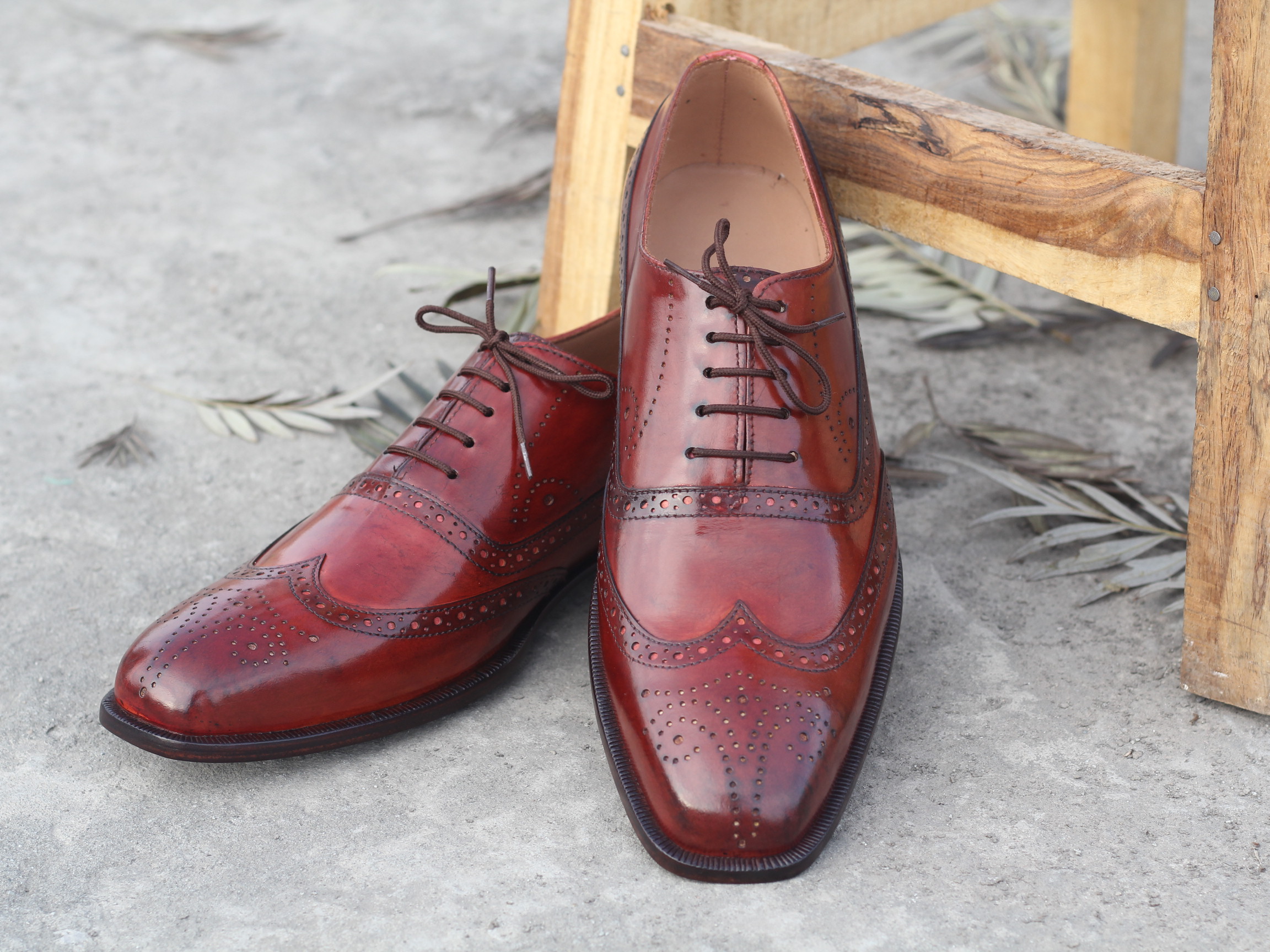 Handmade Men Brown Wing Tip Lace up Formal Shoes, Bespoke Elegant Dress Formal Shoes