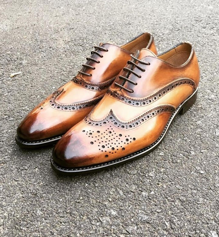 Handmade Two Tone Brogue Wing tip Classic Looks Lace Up Handmade Shoes,Leather Wedding Shoes