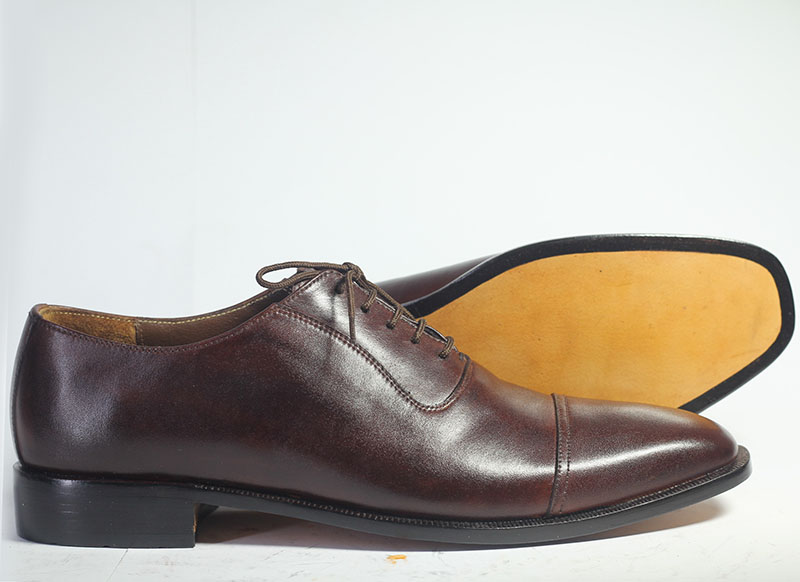 Handmade Men's Brown Color Leather Cap Toe Dress Formal Lace Up Shoes