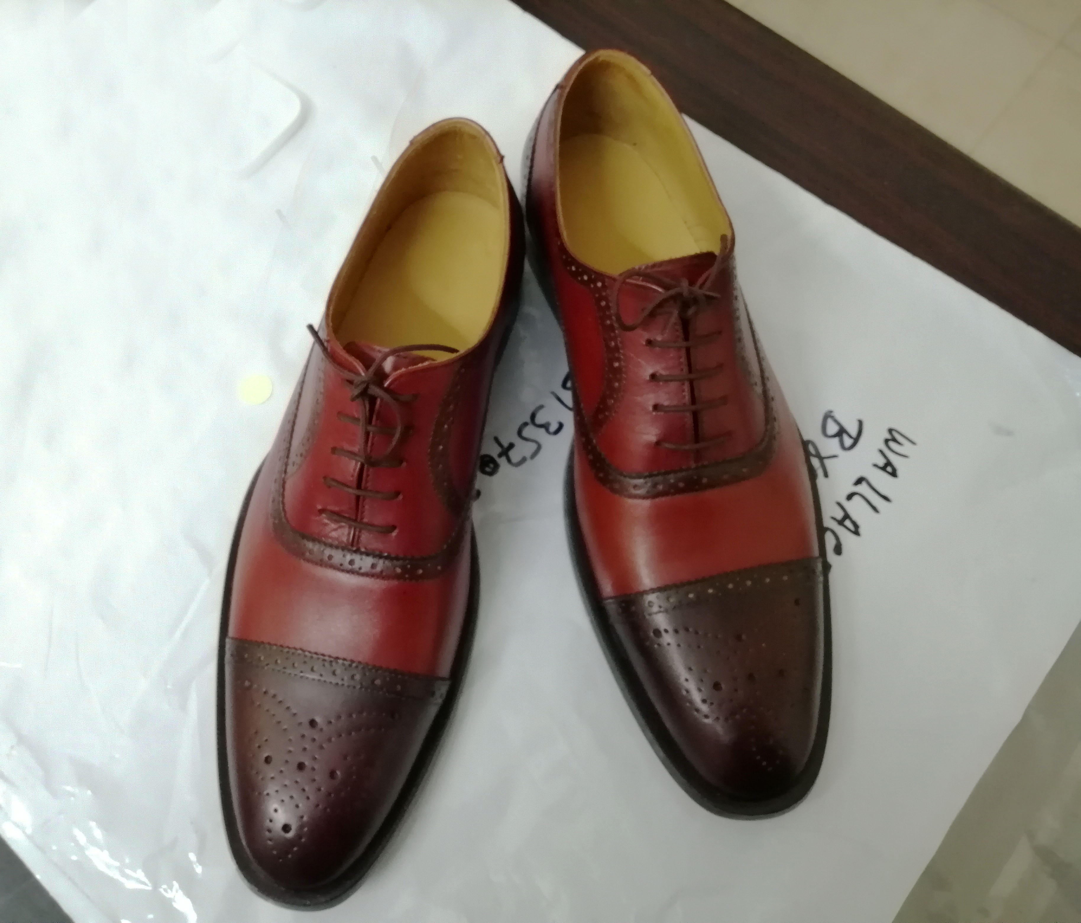 Handmade Two Tone Cap Toe Brogue Leather Lace Up Shoes For Men's