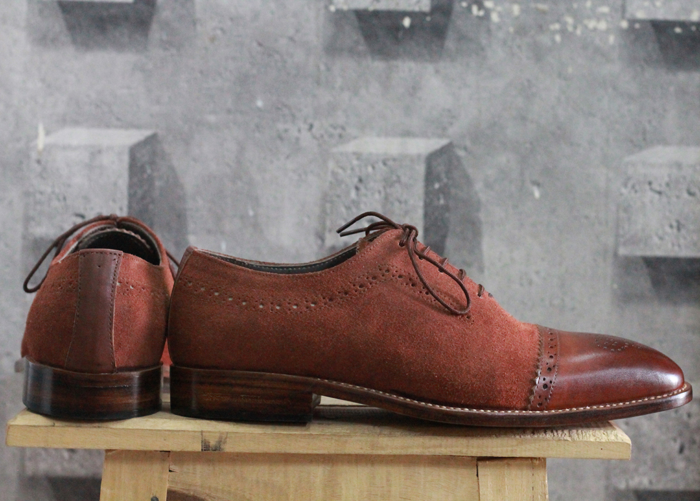 Handmade Men's Brown Color Leather Suede Cap Toe Brogue Dress Formal Lace Up Shoes