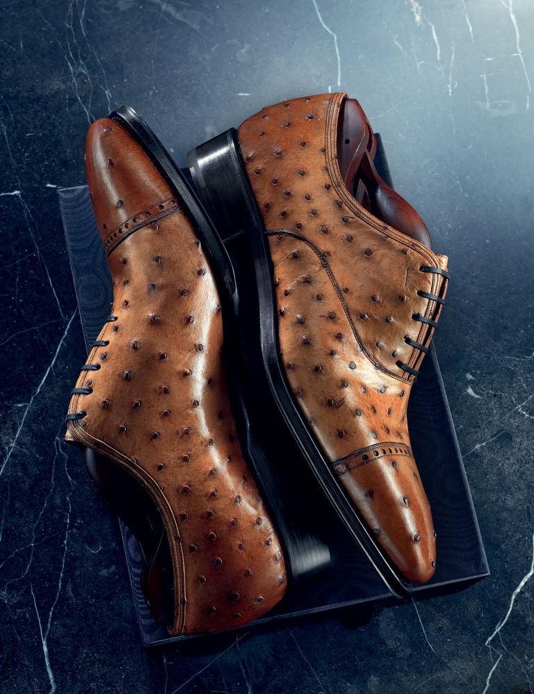 Handmade Men's Leather Brown Ostrich Cap Toe Shoes