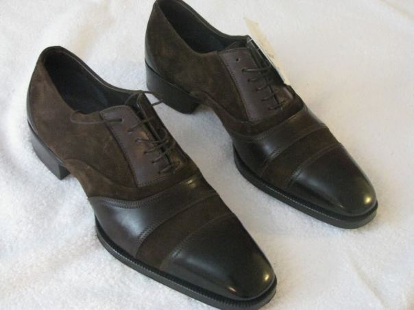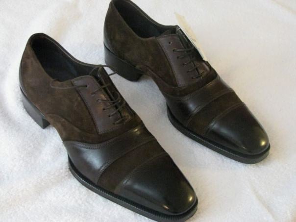 Bespoke Brown Leather & Suede Cap Toe Shoes, Stylish Elegant Dress Leather Shoes