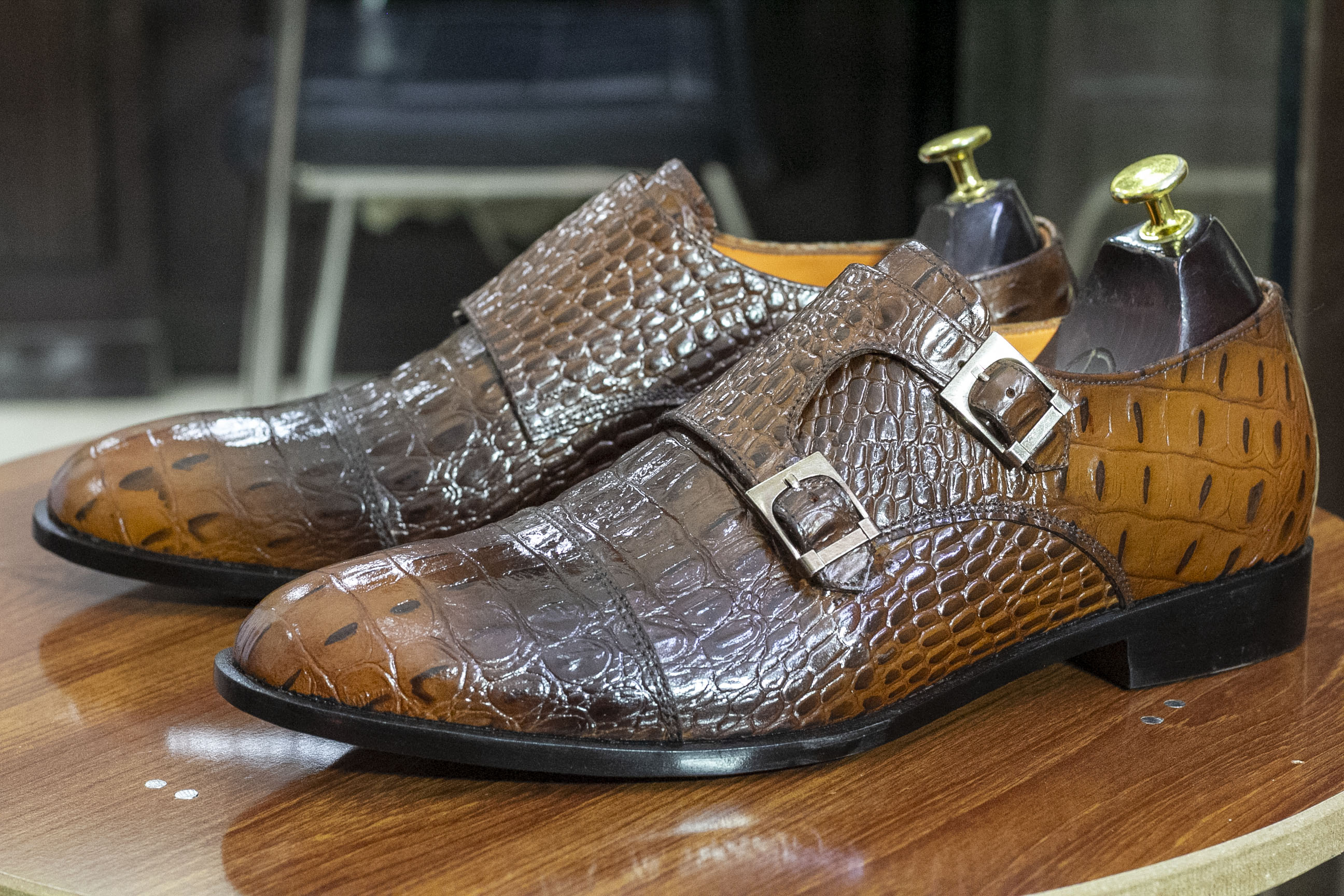 Handmade Two Tone Alligator Texture , Stylish Double Monk Shoes For Men's