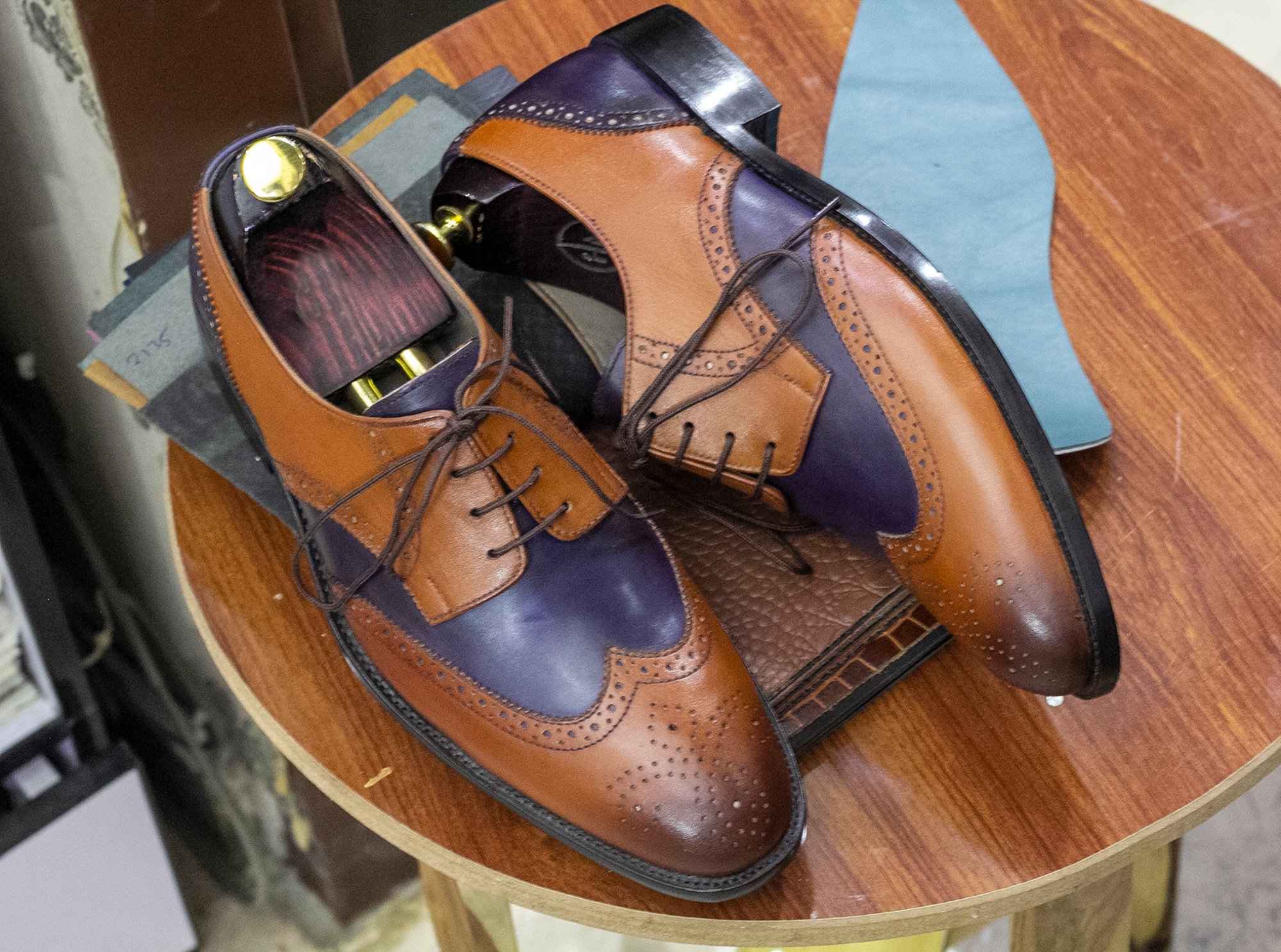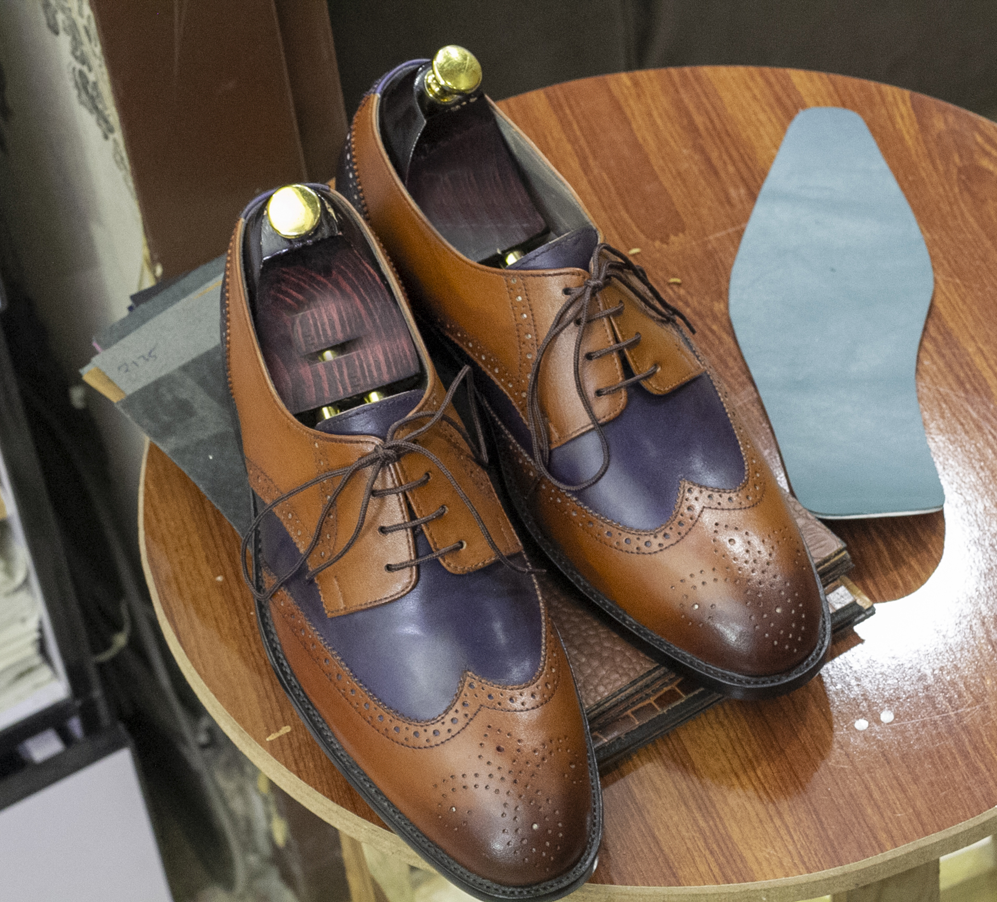 Two Tone Men's Handmade Wing Tip Style Leather Shoes Upper