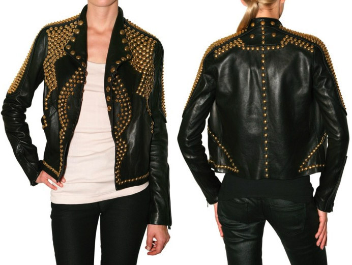 Handmade Punk Black Golden Studded Punk Cowhide Leather Jacket For Women