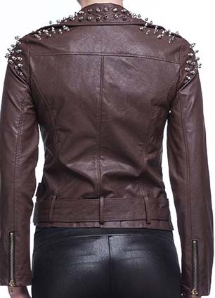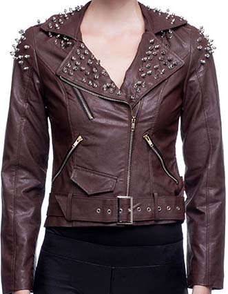 Handmade Burgundy Women's Fashion Leather Silver Studded Punk Jackets