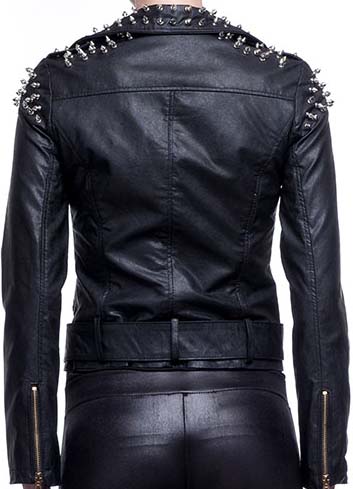 Handmade Black Women's Fashion Leather Silver Studded Punk Jackets