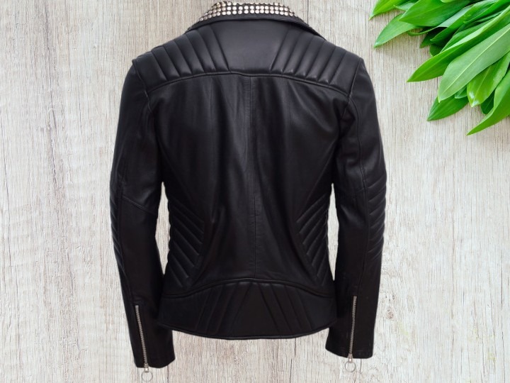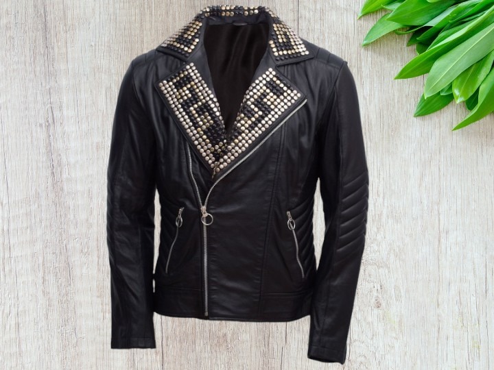 Any custom change you want is possible. Please send us message for further details. Studded Jacket made with 100 % Genuine Top Quality Cowhide Leather Golden Silver Studded the jacket is not real branded but same as shown in the picture High Quality Studs. Each securely added by hand Cropped, Vintage - Inspired Motorcycle / Moto / Biker Fit 0.9 to 1.0 MM Cowhide Leather used Polyester Inner Lining & inside Pocket Zipper details on Sleeves Soft Black Real Leather All Sizes Available Make sure to look at the size chart below before selecting your size. There can be slight difference between the original product and the pictures attached above in followings like: accessories, zipper or color shade and size Fit may differ from images due to every time new materials came . We can Offer you customized size/ customized design and Color Changes If you want we can write your Name or logo on the Jacket or on the Suit Size more then 3XL $20 will be charged and from 5XL, 6XL and custom size $35 please add into invoice before paying Shipping Service: We use DHL, Fedex, SKY NET and EMS Please note Buyer from Central & South America and Eastern Europe need to pay Extra Charges for shipping because shipping companies charge high for these destinations