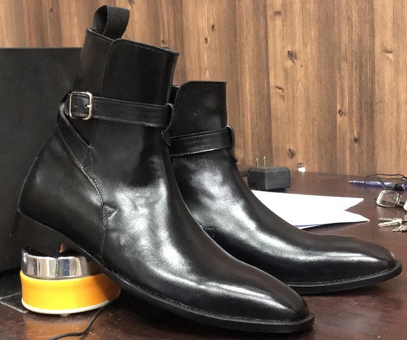 Men's Handmade Ankle High Black Jodhpurs Monk Strep Leather Dress Boots