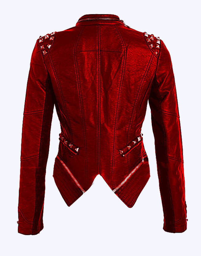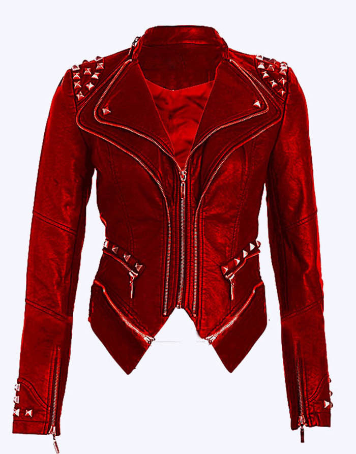Handmade Woman WWE Paige Silver Studded Brando Punk Cowhide Leather Biker Jacket