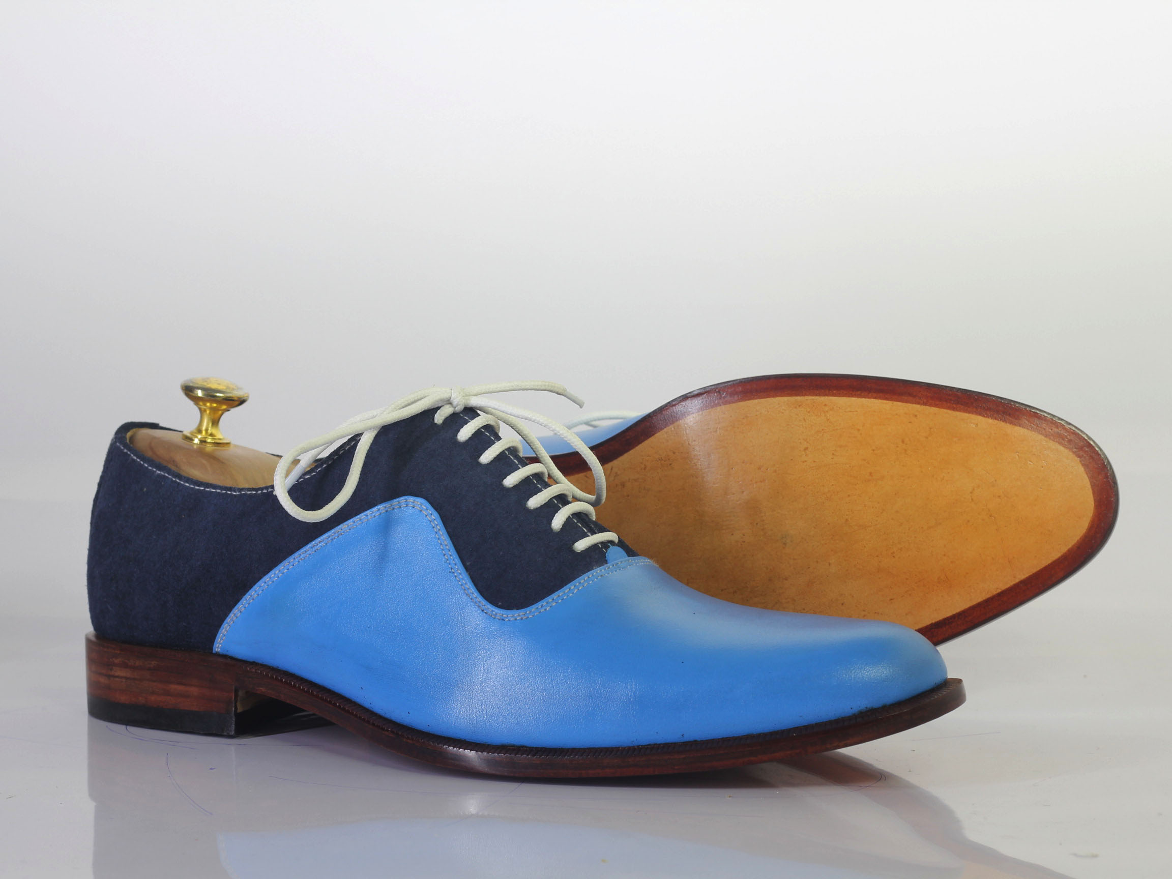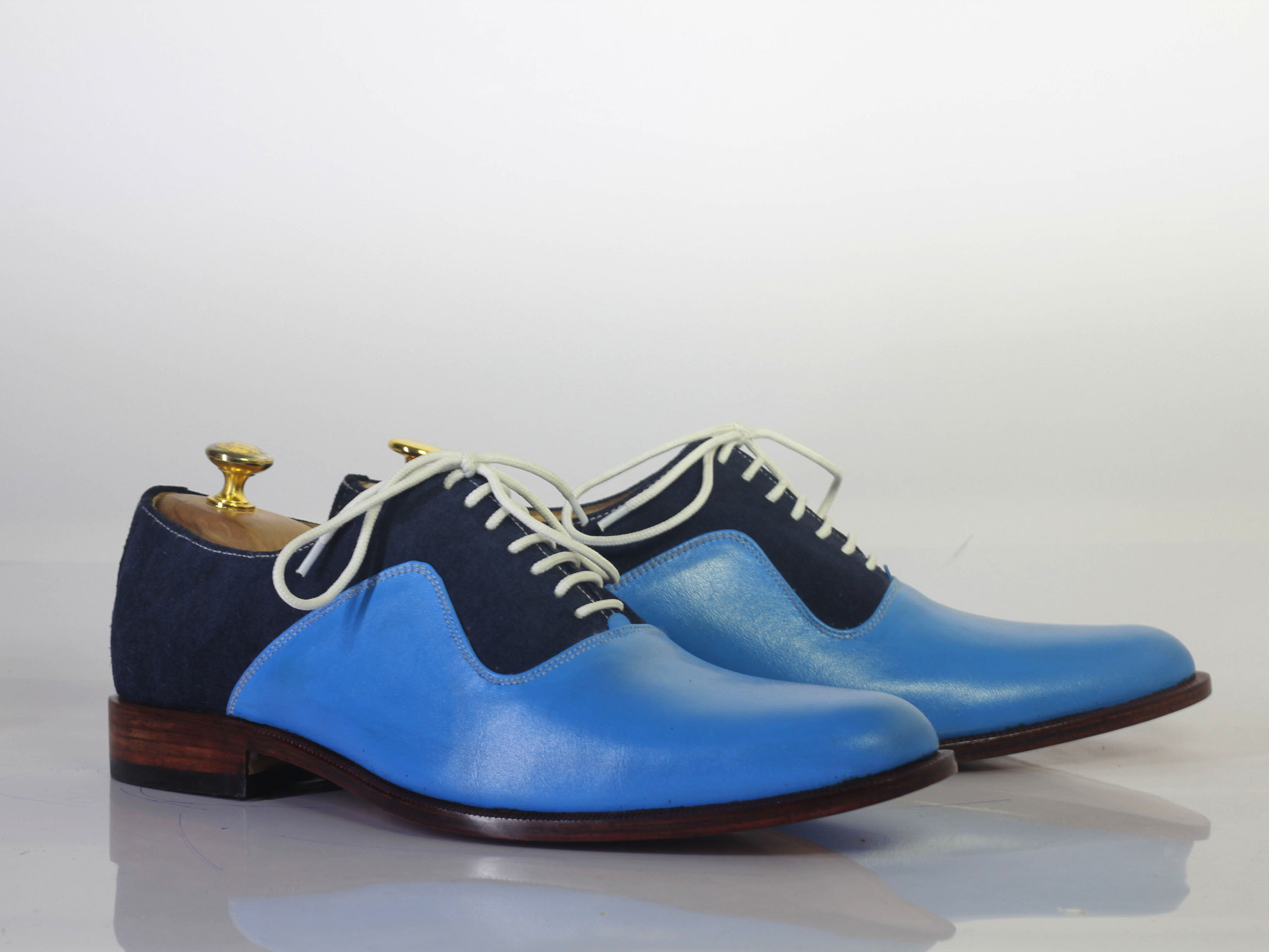 Handmade Blue Round Toe Leather Suede Stylish Lace Up Shoes For Men's