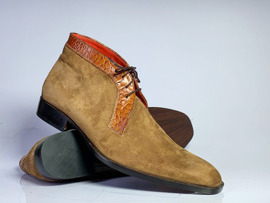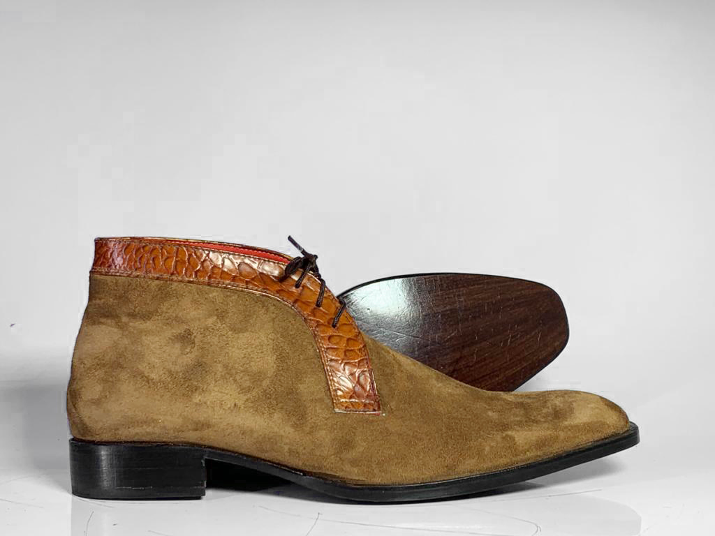 Handmade Men's Brown Color Suede Stylish Dress Boots