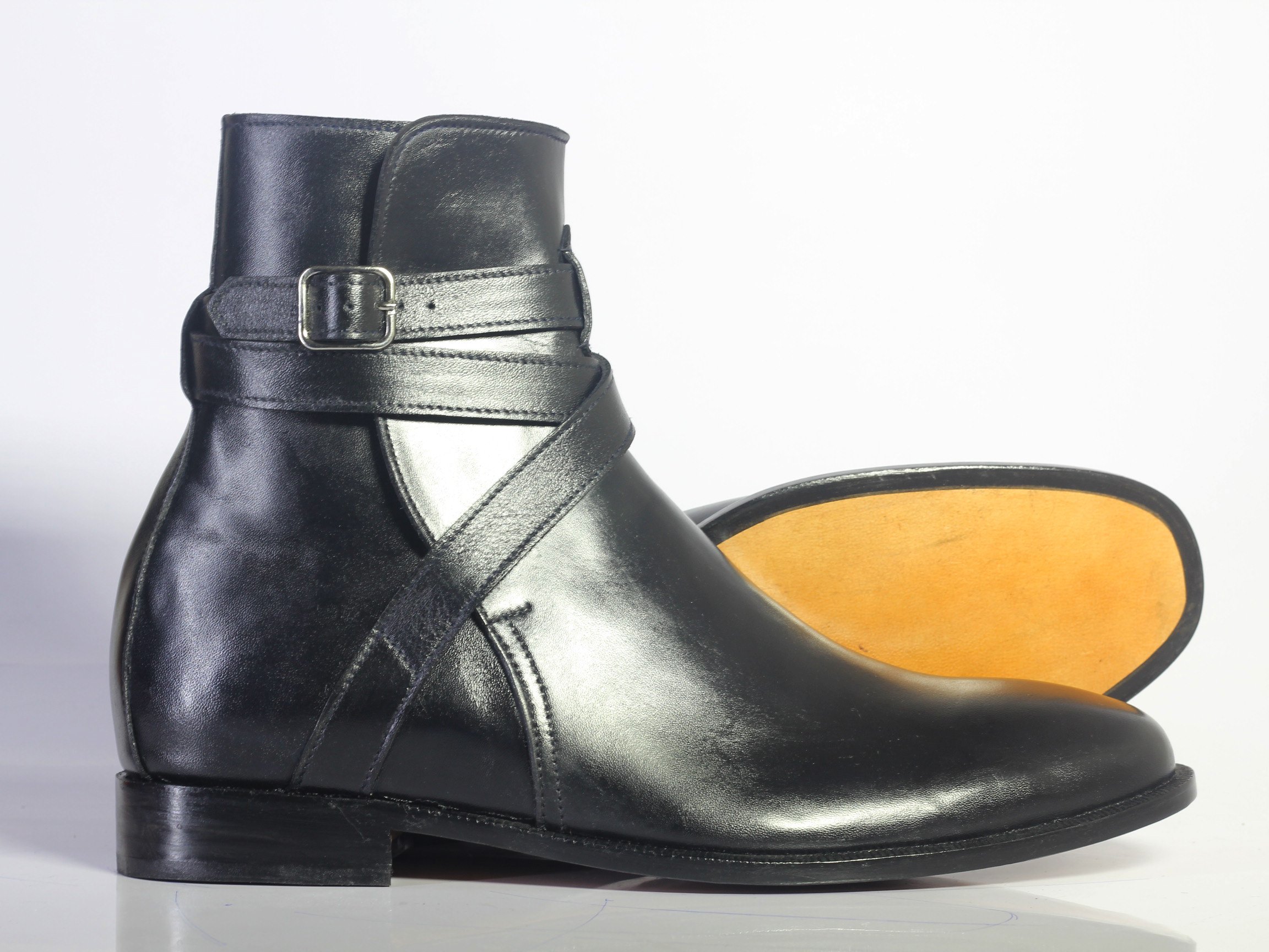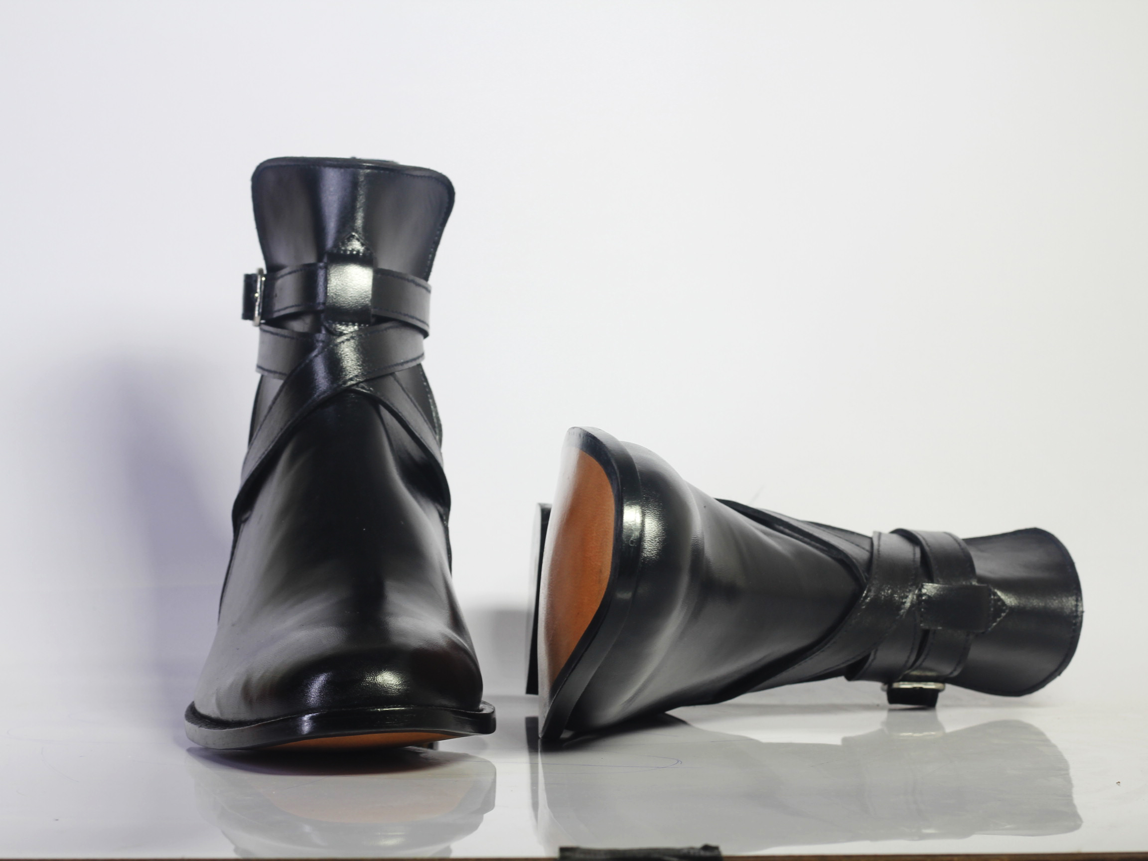Handmade Men's Black Color Jodhpurs Leather Ankle High Boots