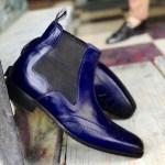 Handmade Men's Blue Wing Tip Brogue Leather Ankle High Chelsea Dress Boots