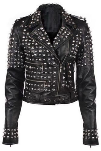 Handmade Black Women's Fashion Leather Silver Studded Punk Jackets