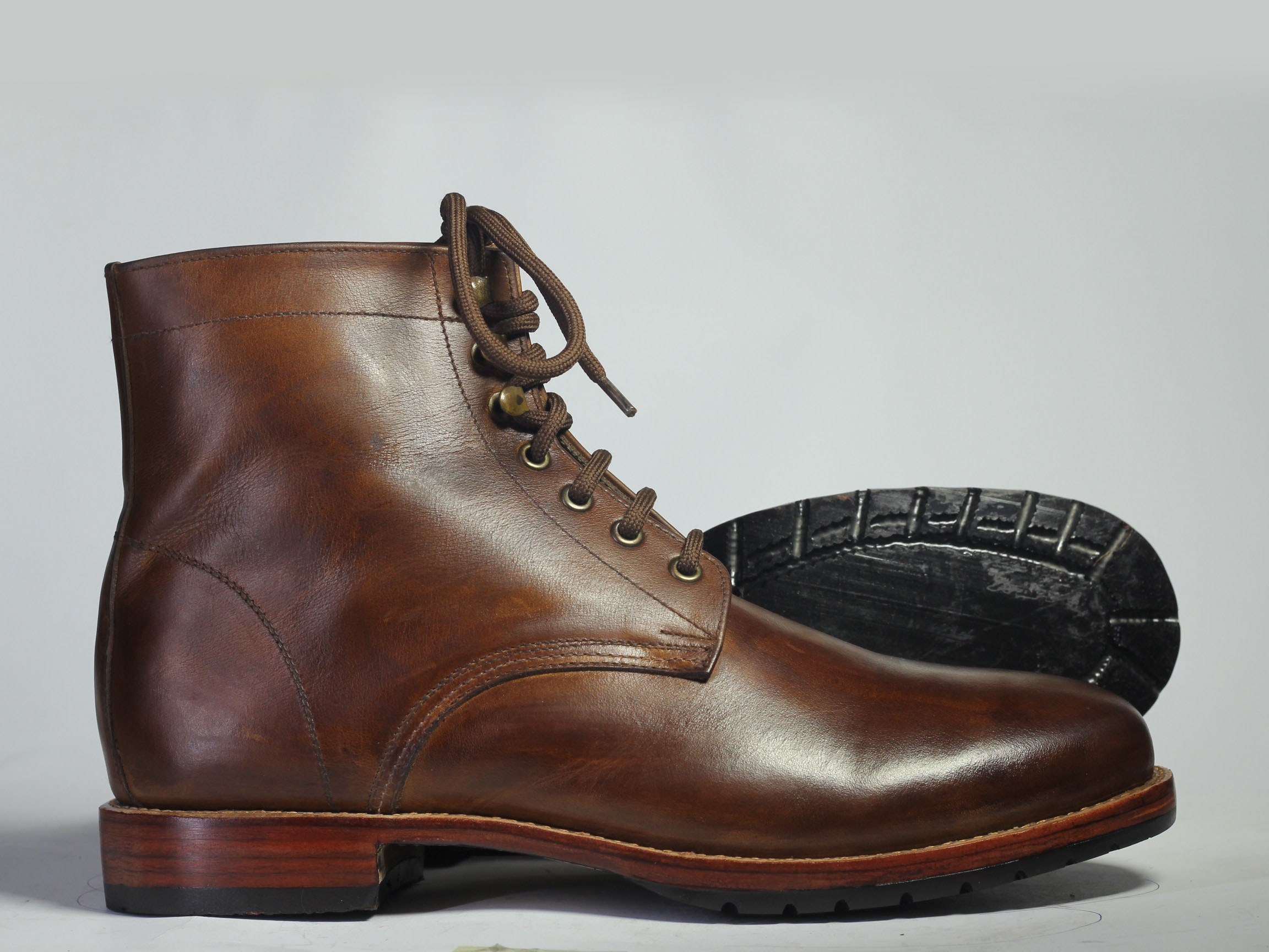 Handmade Men's Brown Ankle High Leather Lace Up Boots