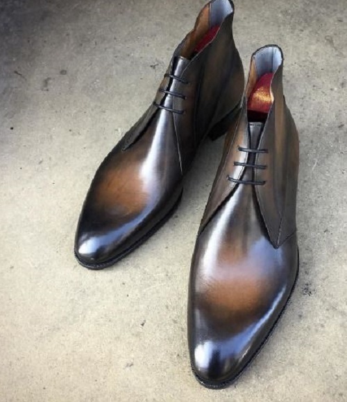 Handmade Men's Brown Ankle High Leather Lace Up Boots