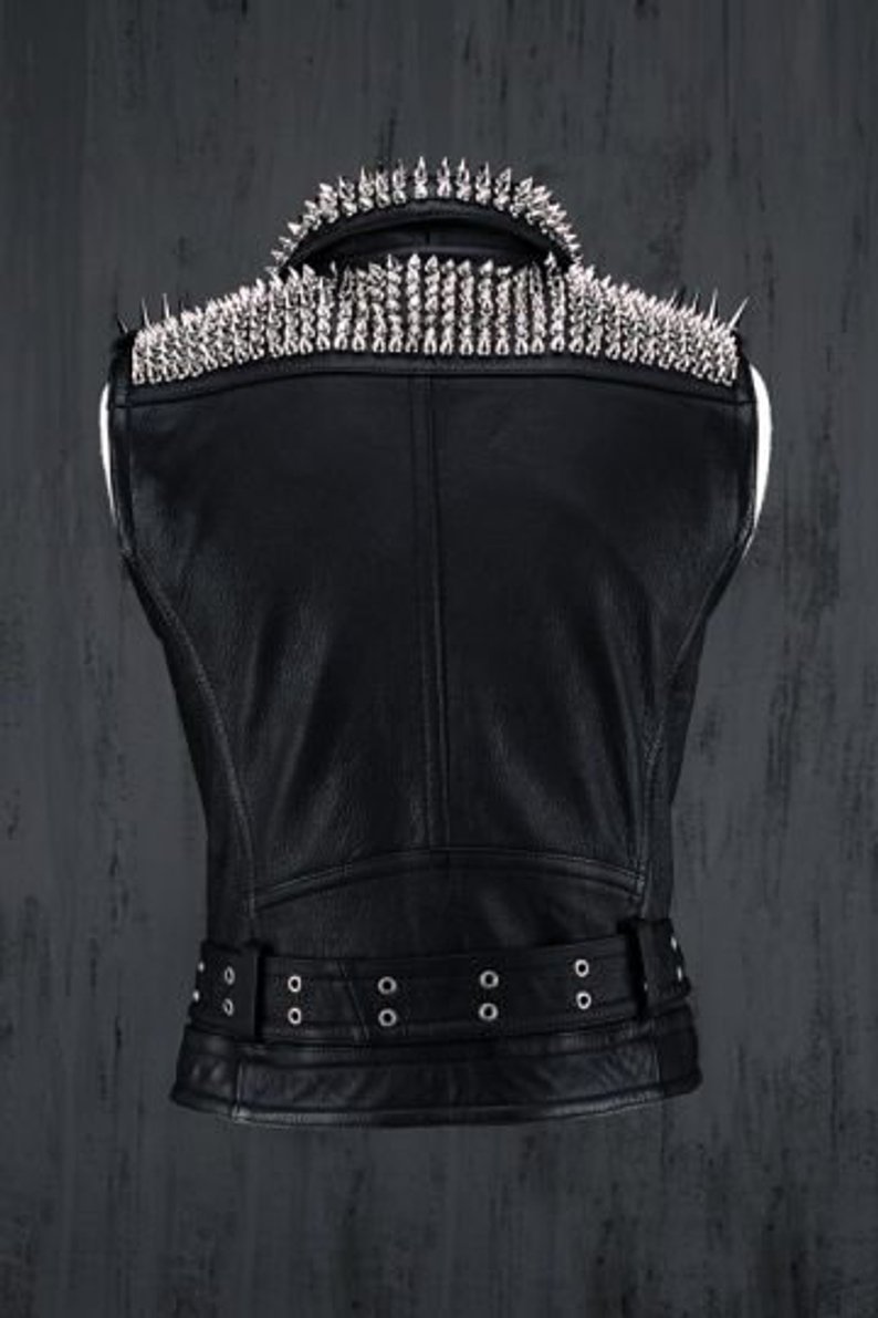 Handmade Women's Sliver Studded Punk Fashion Black Leather Stylish Jacket