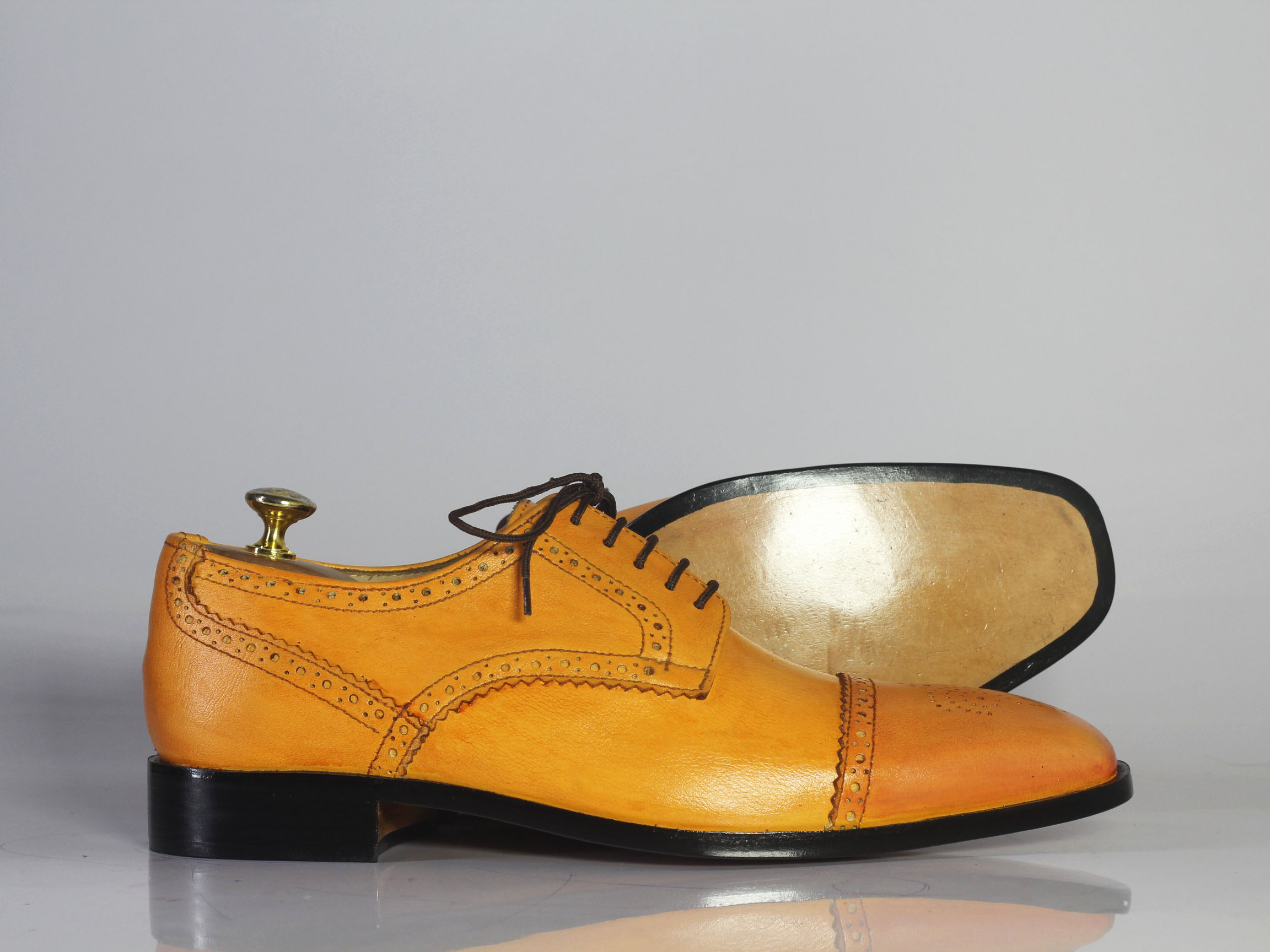Handmade Men's Tan Cap Toe Brogue Leather Lace Up Shoes