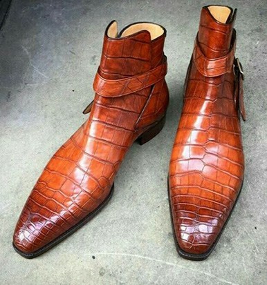Handmade Tan Brown Color Jodhpurs Alligator Leather Boots For Men's