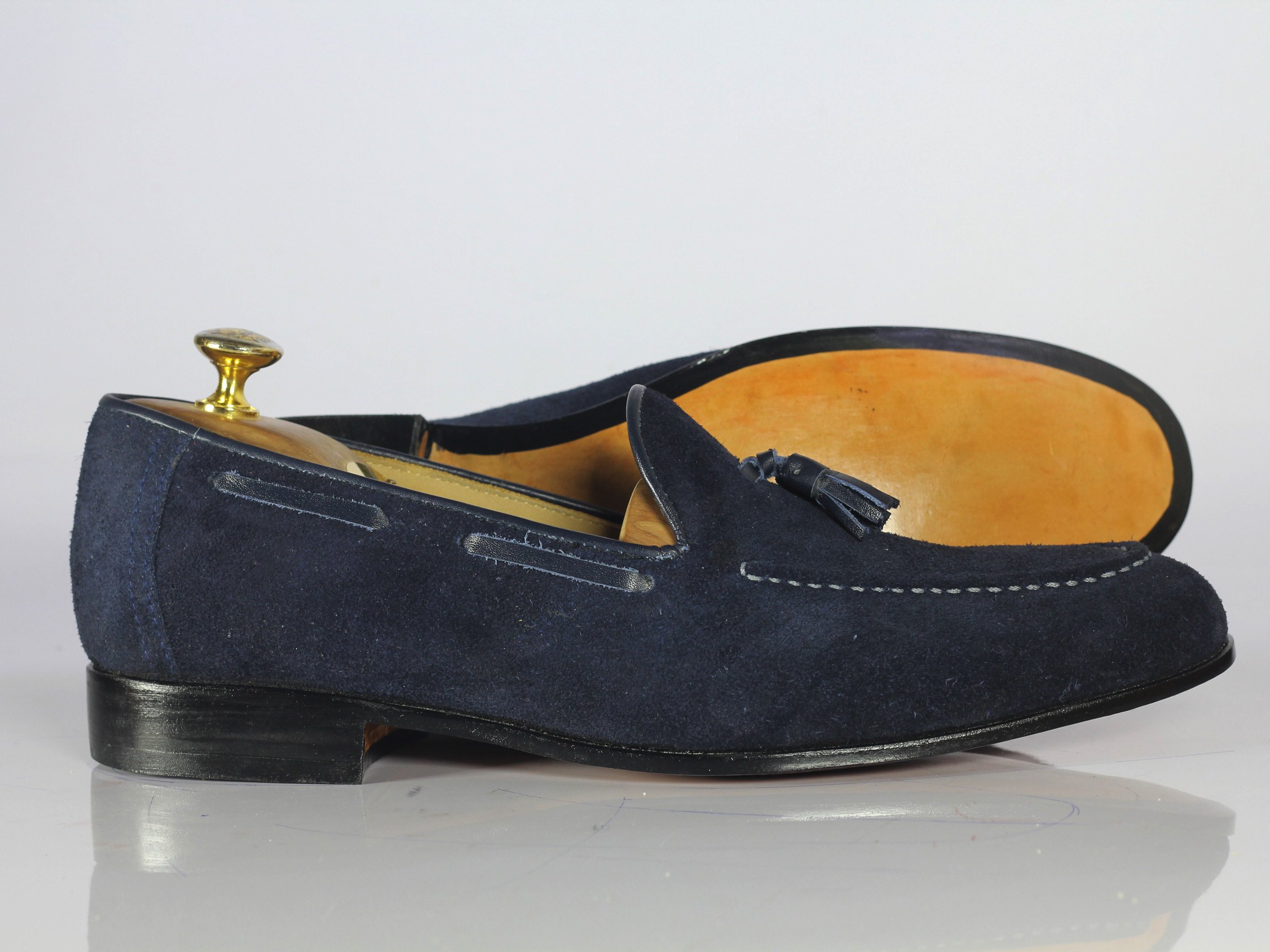 Handmade Navy Blue Suede Tussles Loafer For Men's