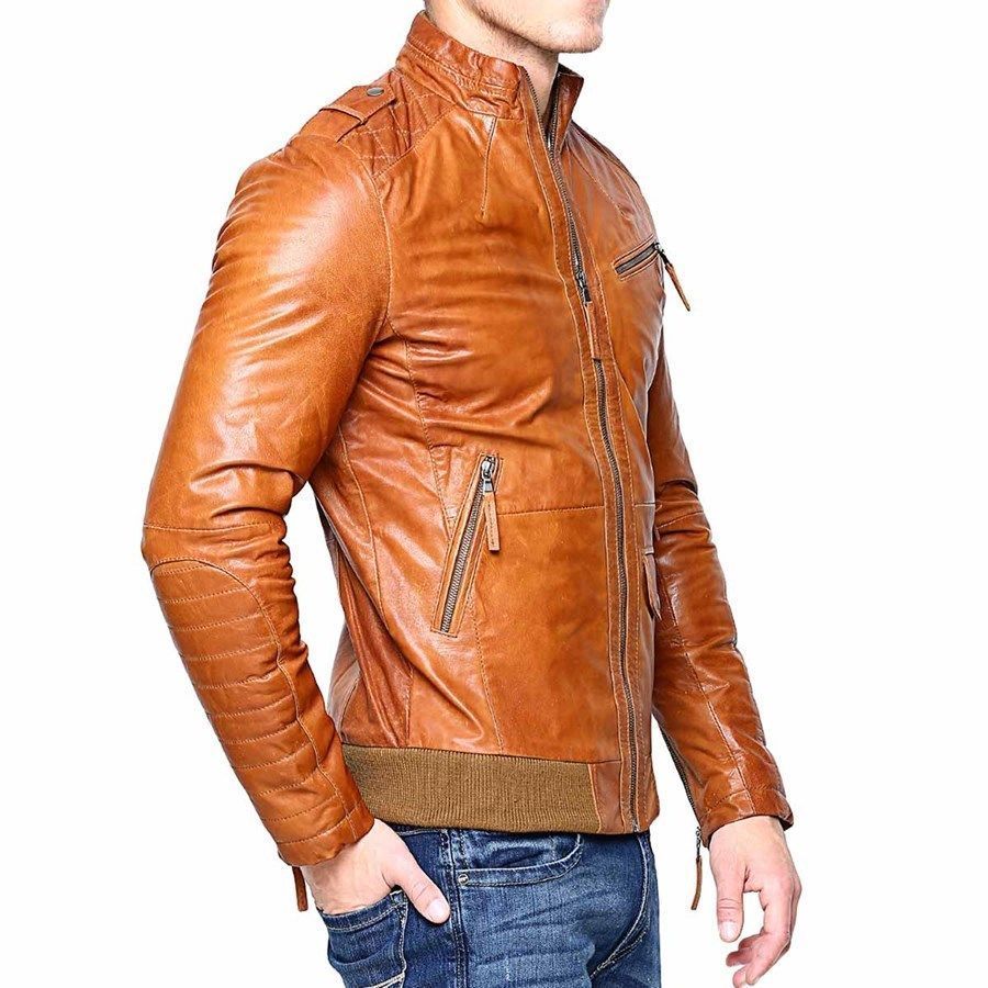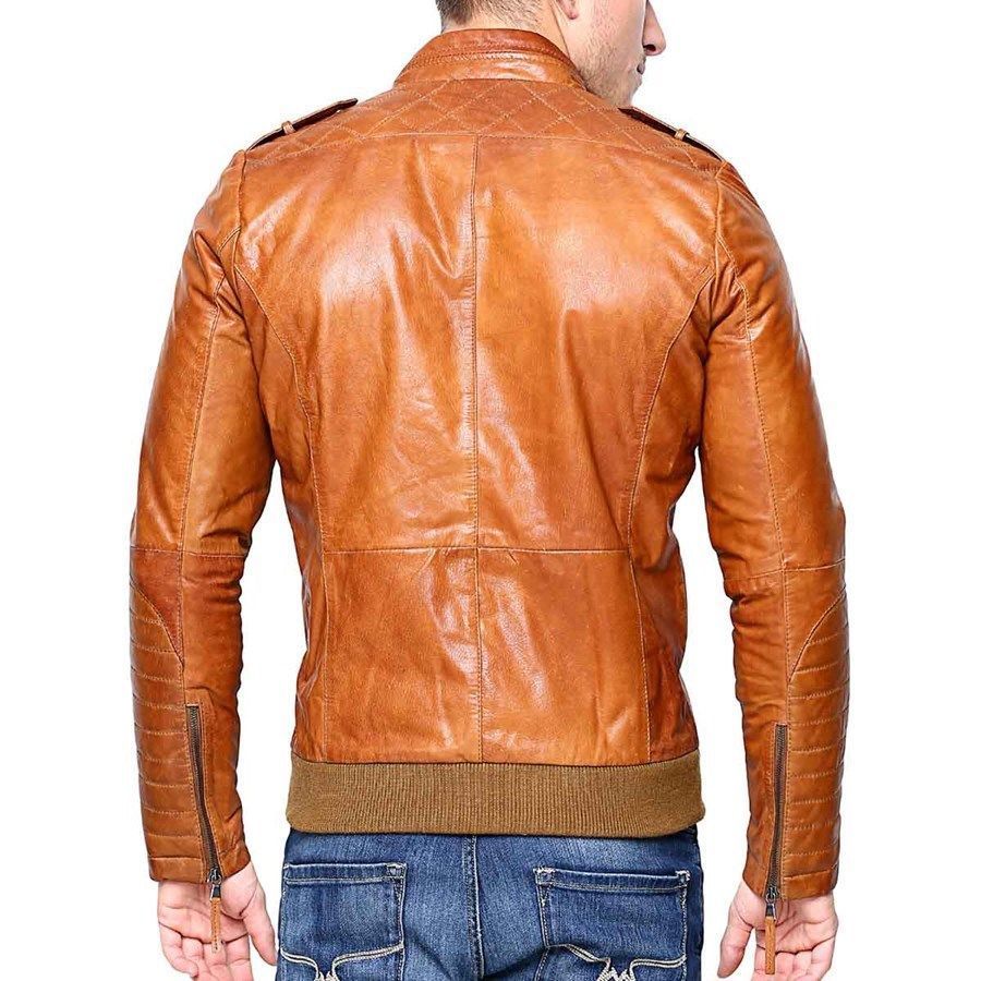 Handmade Real Lambskin Tan Brown Leather Motorcycle Slim fit Biker Mens