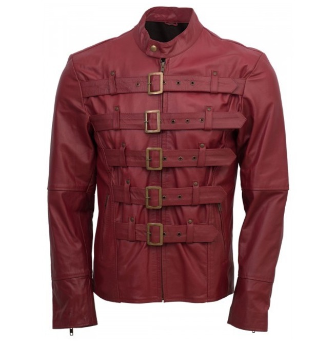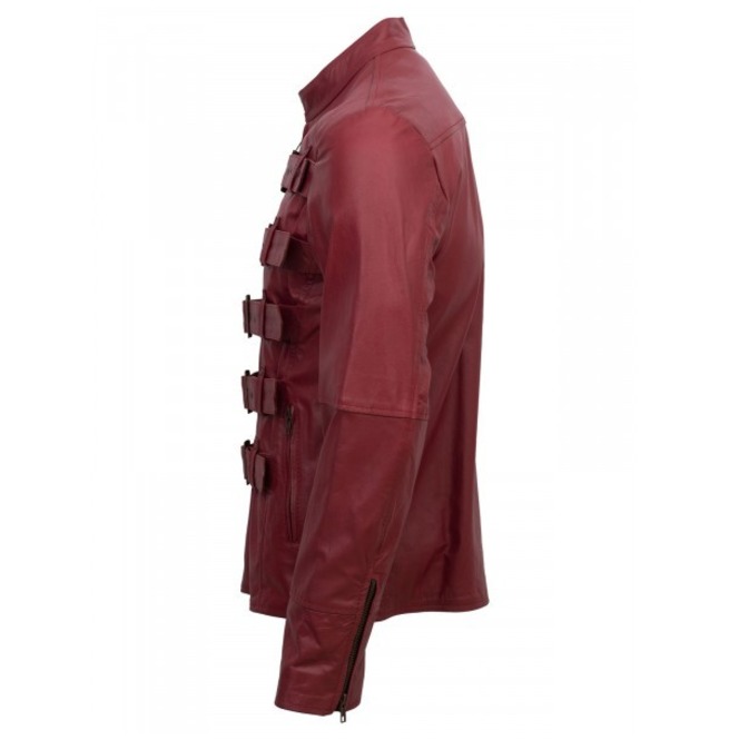 Handmade Designer Men's Maroon Belted Military Style Fashion Leather Jacket