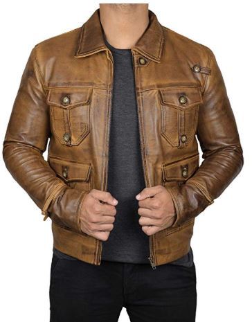 Handmade Men's Tan Leather Jacket, Genuine Leather Fashion Zipper Jacket