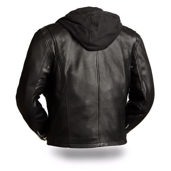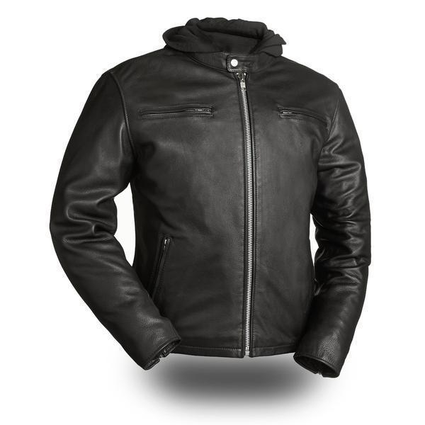 Handmade Men's Black Leather "Street Cruiser" Motorcycle Hoodie Jacket