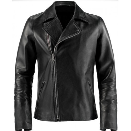 New Handmade Men's Ghost Rider Black Leather Fashion Zipper Jacket