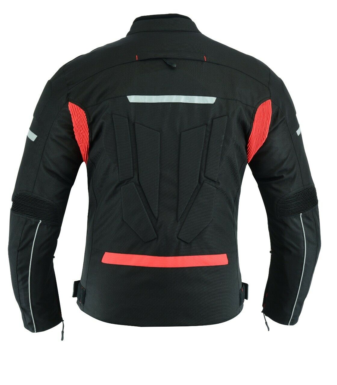 New Handmade Men's Black Leather Armored Motorcycle Racing Red & White Strips Protection Jacket