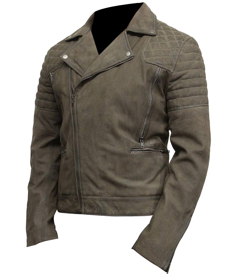Handmade Men's Gray Suede Biker Jacket