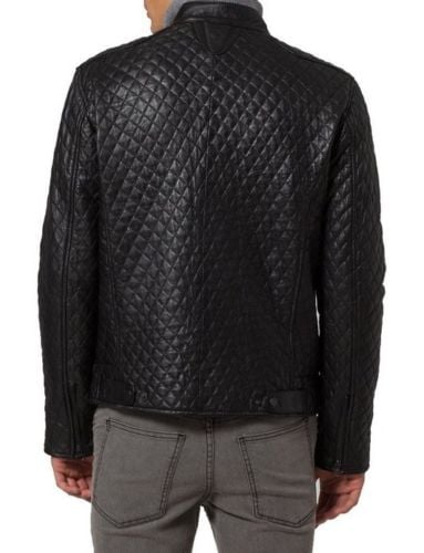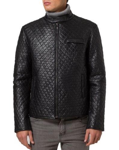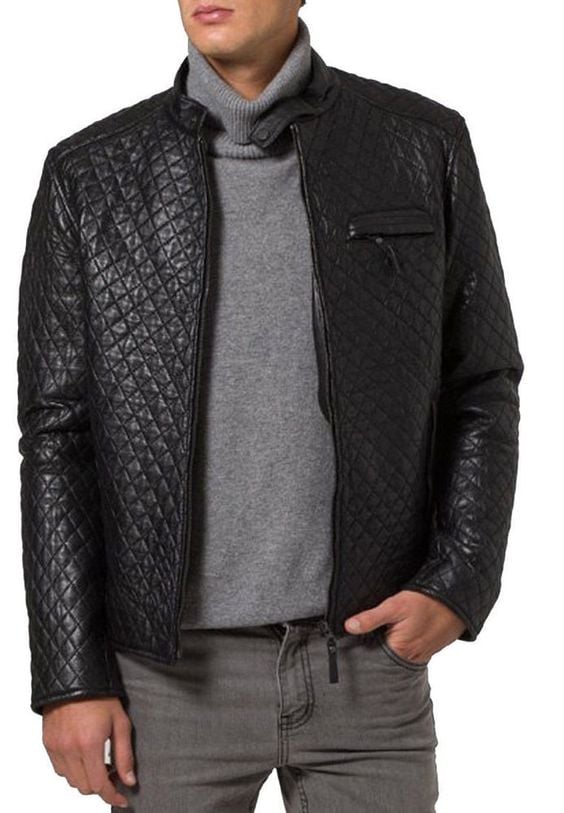 Handmade Men's Black Quilted Leather jacket, Mens Black biker Jacket