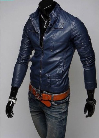 Handmade Men's Navy Stylish Leather Jacket, Classic Leather Jacket For Men