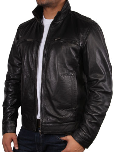 HANDMADE MEN'S BIKER LEATHER JACKET, MEN BLACK MOTORCYCLE JACKET