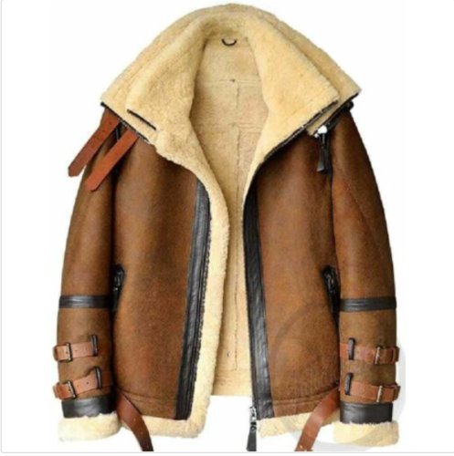 Men's Brown B3 RAF Flight Bomber Aviator Fax Shearling Real Leather Jackets
