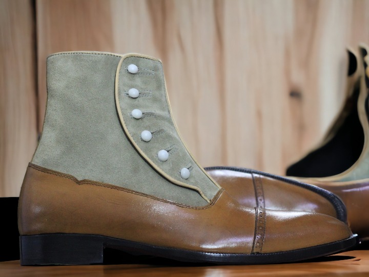 Handmade Men's Leather Suede Two Tone Button Top Cap Toe Ankle High Boots, Designer Boot