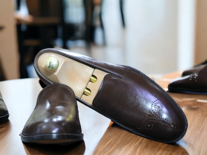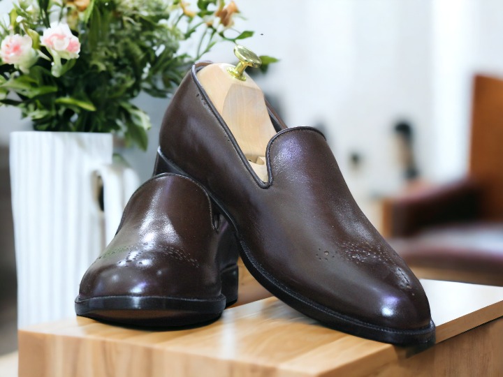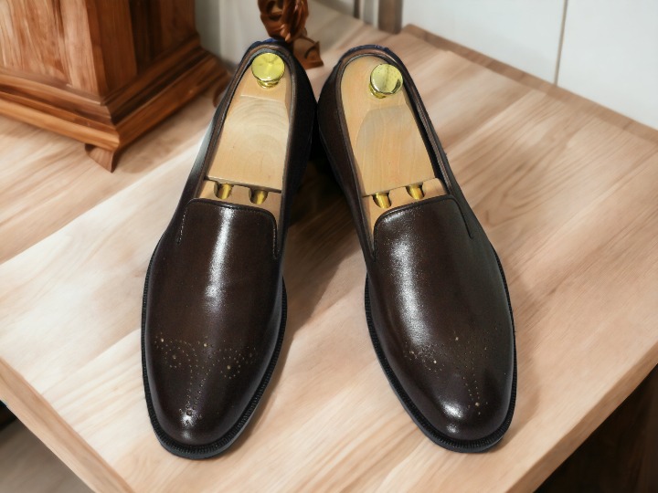 Handmade Men's Brogue Toe Chocolate Brown Loafers Shoes, Slip On Moccasin Shoes