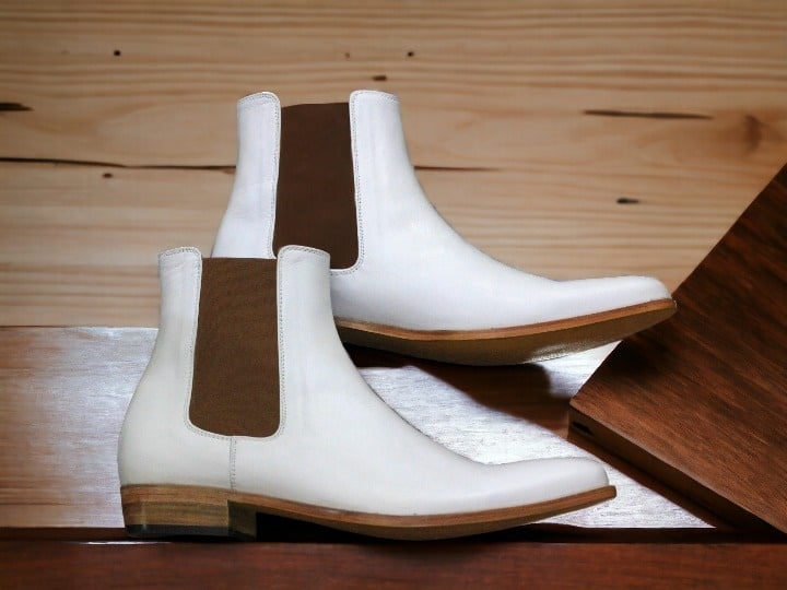 Ankle High Men's Handmade White Chelsea Boot, Leather Fashion Boot