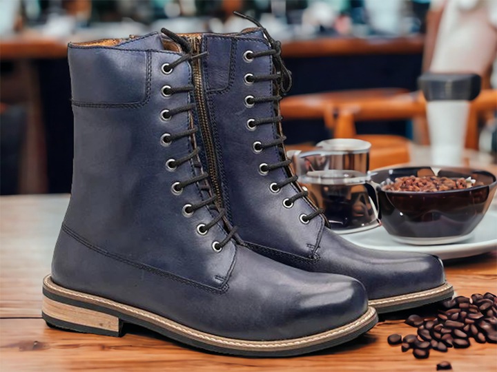 Handmade Men's Blue Laceup Zipper Leather Ankle High Boot