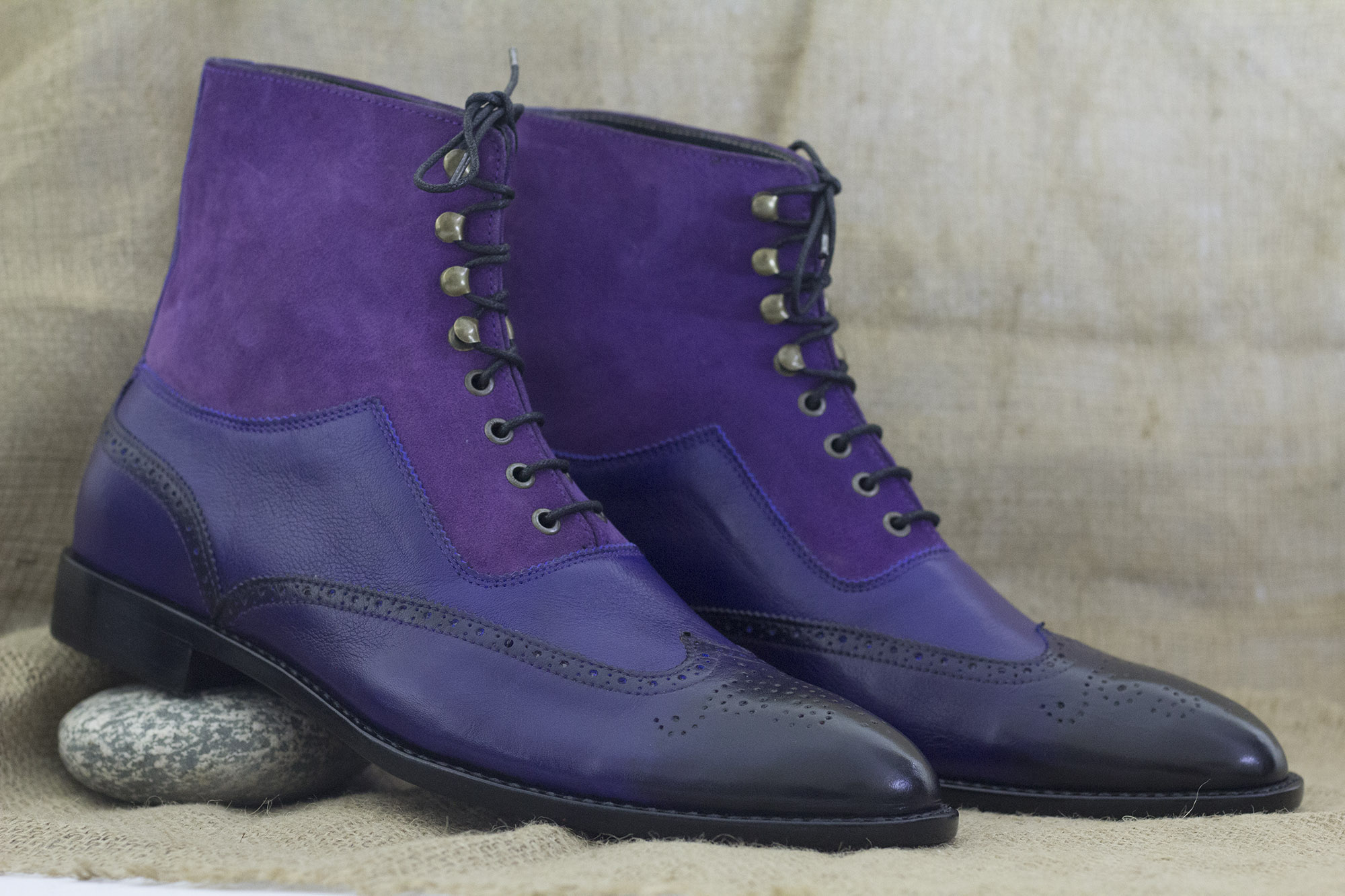 Handmade Two Tone Lace Up Leather Suede Ankle High Boot