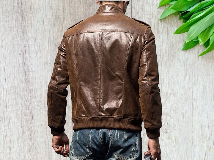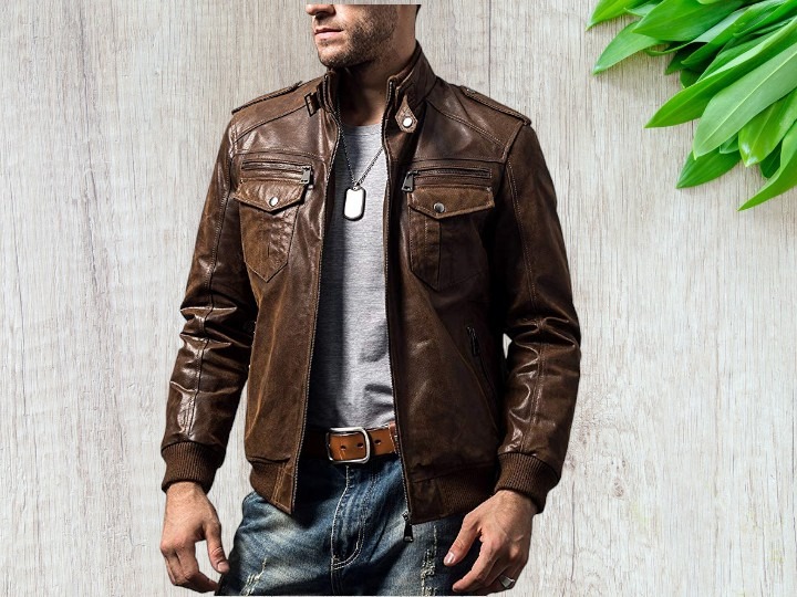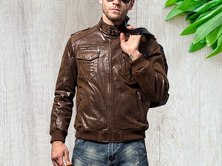 Handmade Brown Genuine Leather Jacket, Men's Biker Zipper Jacket